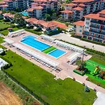 В семеен апартаментен комплекс Шато Ахелой, разположен на около 10-минутно пътуване от аквапарк Несебър, може да намерите семейно обслужвани апартаменти, които предлагат спа удобства като външен басейн. Едно от най-привлекателните неща в този апартамент е терасата, която позволява на гостите да се насладят на изглед към планината.